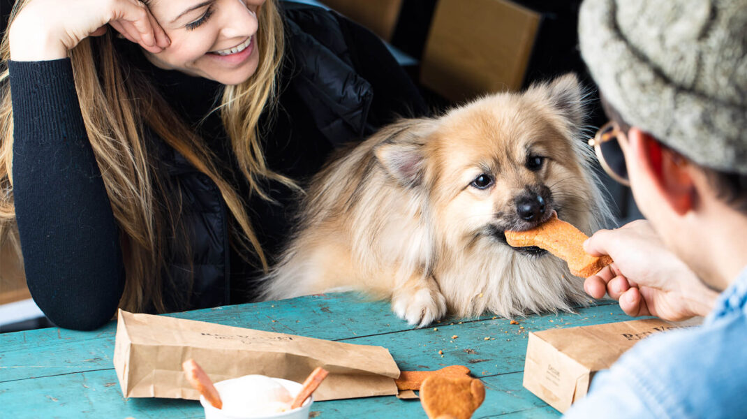 Every Shake Shack location has a specially created menu for dogs, with treats such as Pooch-iniTM, pup-friendly vanilla custard with red velvet dog biscuits by Outsider Tart and our Bag O’ Bones® – a doggie bag of 5 red velvet dog biscuits made by Outsider Tart.