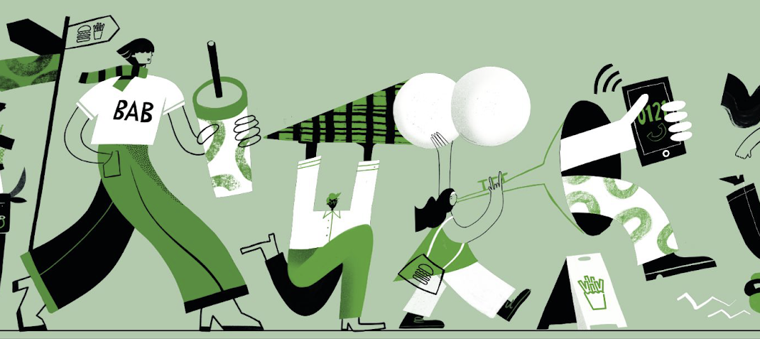 We have collaborated with Birmingham-based illustrators Lauren and Liv, also known as Pickle Illustration, to create a unique mural for the interior of our Birmingham Grand Central Shack; who draw inspiration from Birmingham’s iconic landmarks and Shake Shack’s menu.